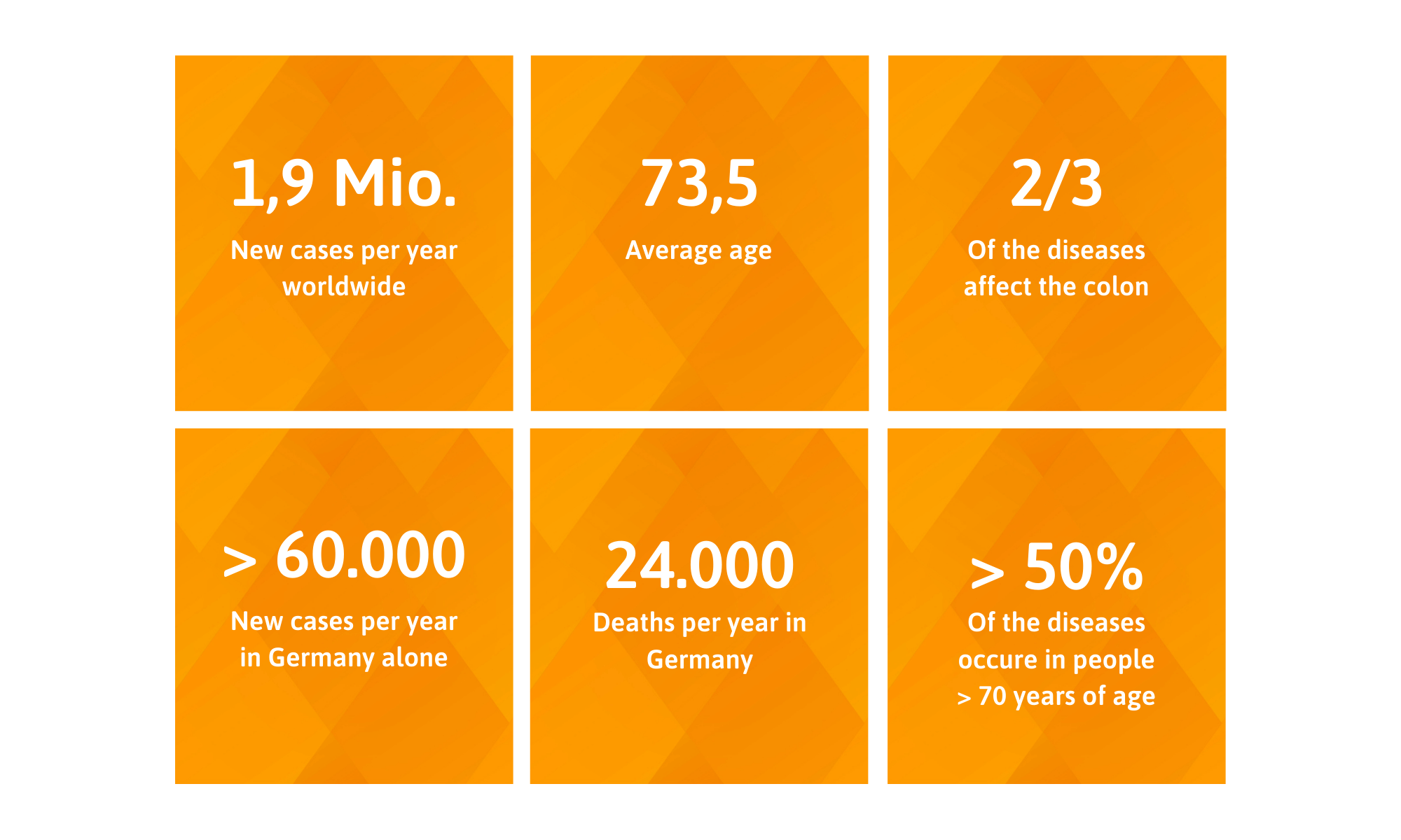 By 2020, it is estimated that almost 1 million people worldwide will have died of colorectal cancer. The relative 5-year survival rate for colorectal cancer patients in Germany is 65% (women) and 63% (men). If the cancer is diagnosed at an early stage, i.e. at best before symptoms appear, the chances of cure and thus life expectancy increase significantly. If the disease is diagnosed at stage I, about 92-95% of those affected survive the first 5 years after diagnosis. Efficient prevention through early detection measures can prevent 40-60% of cancer cases and deaths.